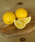 Our Certified Organic Meyer Lemons are some of the best tasting fruit you will enjoy. As a variety, they're believed to be a hybrid cross between a lemon and a mandarin orange. These genetic changes produce a low acid, slightly sweet, rich flavor in the Meyer variety making them a perfect centerpiece ingredient for lemon curd, pudding, tarts, cookies, cakes, and even Limoncello! They're rounder than regular lemons and tend to have an orange tint when ripe.