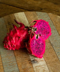 Dragon Fruit, also known as Pitaya, grows on a succulent vine and has a gorgeous magenta flesh. Super sweet, juicy, slightly tangy with a tropical freshness makes dragonfruit an unforgettably delightful fruit to enjoy! Cut and eat raw or freeze in chunks to make smoothies. High in antioxidants and vitamins, a daily serving of Dragonfruit is a great shot of essential vitality to your body!